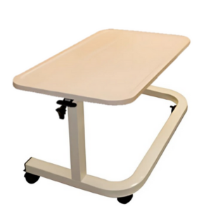 The ultra-low floorline over-bed table is designed for easy use with floorline or low-profile beds. Featuring a height-adjustable mechanism, durable steel construction, and four locking swivel castors for easy mobility, this table ensures stability and safety. Available in custom colours with a moulded tabletop to prevent items from slipping off. Ideal for home care or hospital settings.